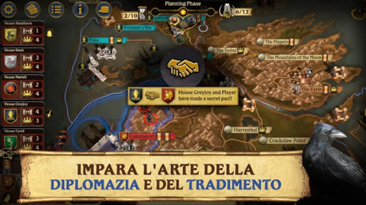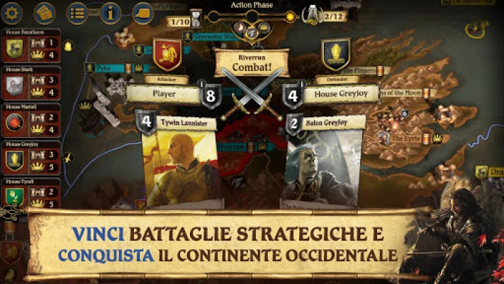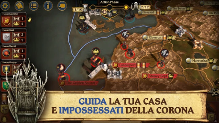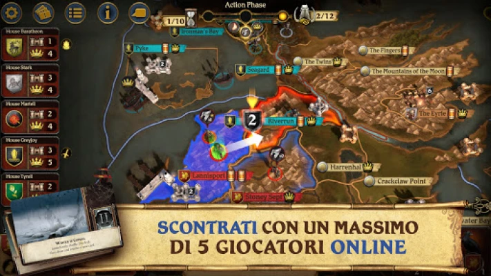 In Il Trono di Spade: Il Gioco da Tavolo - Edizione digitale, avrai il pieno controllo delle tue forze e della tua diplomazia. Impartisci ordini segreti, muovi i tuoi eserciti con precisione chirurgica e conquista fortezze e castelli vitali per espandere il tuo controllo. Le battaglie prendono vita con l'intervento di personaggi iconici come Jaime Lannister o Eddard Stark, le cui abilità possono rovesciare le sorti di uno scontro. Ma la vittoria non si ottiene solo con la forza bruta: affina l'arte del tradimento e delle alleanze, perché solo il più scaltro potrà superare i nemici e ascendere alla corona. L'influenza a corte è cruciale per ottenere posizioni chiave e sbaragliare gli avversari con la strategia.