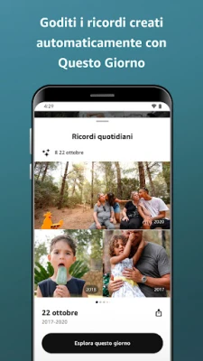 Non lasciare che i tuoi ricordi più preziosi svaniscano nel nulla. Con Amazon Photos, ogni istante catturato dal tuo dispositivo mobile viene automaticamente salvato e protetto. Questa soluzione intuitiva ti offre la tranquillità di sapere che le tue foto e i tuoi video sono al sicuro, lontano da rischi di smarrimento o danni al telefono. Una volta custoditi su Amazon Photos, puoi liberare spazio prezioso sul tuo dispositivo, senza rinunciare a nessuna delle tue preziose immagini.