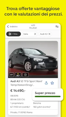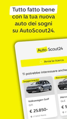 Con AutoScout24, la personalizzazione è al centro della tua esperienza. Utilizza i nostri filtri di ricerca avanzati e la funzione "appunti" per salvare e confrontare i tuoi veicoli preferiti. Ricevi notifiche istantanee direttamente sul tuo smartphone per ogni variazione di prezzo o per le nuove offerte che corrispondono ai tuoi criteri, rimanendo sempre un passo avanti. Se desideri vendere, ottieni una valutazione gratuita del tuo veicolo in pochi istanti e crea un annuncio professionale con facilità, raggiungendo milioni di potenziali acquirenti su una delle più grandi piattaforme europee.