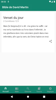 Porta con te l'intera Bibbia francese di David Martin sul tuo dispositivo Android. Questa app ti offre un nuovo versetto biblico ispiratore e motivante ogni giorno, per arricchire la tua fede e accompagnarti in ogni momento della giornata.