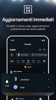 Per elevare ulteriormente la tua esperienza, DAZN integra strumenti pensati per ogni esigenza. Organizza la tua visione con la funzione Calendario e imposta promemoria per non perdere mai un appuntamento cruciale. Accedi a statistiche e risultati in tempo reale per tutti i match, anche quelli non trasmessi direttamente su DAZN. Gli amanti della boxe troveranno schede dettagliate sui combattimenti e la possibilità di rivedere i round storici con un semplice tocco. Il motore di ricerca intuitivo ti aiuta a trovare rapidamente ciò che cerchi, mentre la sezione "Il mio account" semplifica la gestione del tuo profilo. DAZN si conferma la piattaforma che trasmette il maggior numero di eventi sportivi in streaming a livello globale, portando il cuore dell'azione direttamente a te, con una ricchezza di contenuti dai canali esclusivi come Inter TV e Juventus TV, fino agli sport invernali, l'UFC, l'A1 Padel e gli ATP Challenger.