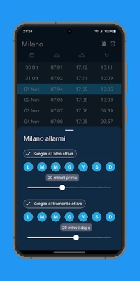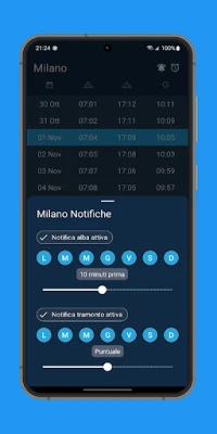 Ogni mattina e sera, l'app ti terrà informato con notifiche giornaliere personalizzabili, indicandoti l'esatto istante in cui il sole farà la sua comparsa o scomparirà all'orizzonte. Se desideri un promemoria più incisivo, le sveglie dedicate all'alba e al tramonto, complete di funzione snooze, garantiranno che tu non perda mai un singolo evento. Ma la sua utilità non si ferma qui: la potente funzione di ricerca globale ti permette di scoprire gli orari solari per qualsiasi località sulla Terra, mentre il selettore di data esteso ti consente di esplorare questi momenti per qualsiasi giorno, passato o futuro, facilitando la pianificazione di viaggi o eventi.