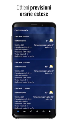 Scopri previsioni meteo precise e sempre aggiornate per pianificare al meglio ogni momento della tua giornata. Ottieni le informazioni essenziali per prendere decisioni consapevoli e vivere al massimo, con dati affidabili a portata di mano.