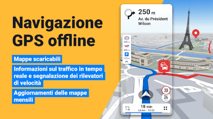 Scopri un nuovo modo di viaggiare con Sygic, la tua compagna di navigazione affidabile, ovunque tu vada. Grazie a mappe offline dettagliate di ogni paese, fornite da leader come TomTom, avrai sempre la strada giusta sotto i tuoi occhi, anche senza connessione internet, e con aggiornamenti gratuiti regolari. La navigazione GPS con istruzioni vocali chiare e la pronuncia dei nomi delle strade ti guiderà con precisione. Esplora milioni di Punti di Interesse (POI) o ammira il percorso con le innovative mappe satellitari, personalizzando persino il tuo veicolo di navigazione, dall'auto di tutti i giorni a un bolide di Formula 1, o avventurati a piedi con indicazioni specifiche per le attrazioni turistiche.