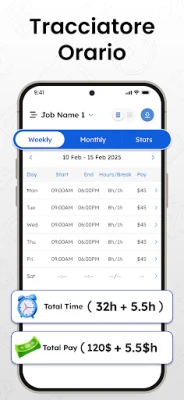 Monitora le tue ore di lavoro senza alcuno sforzo. Questa app di tracciatore orario offre una soluzione intuitiva e precisa per registrare il tempo dedicato ai tuoi progetti, garantendo massima efficienza e chiarezza nel conteggio. Semplifica la gestione del tuo tempo.