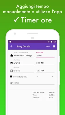Con "Registra Orari" di ore, monitorare il tuo tempo di lavoro non è mai stato così semplice e preciso. Ottieni un registro orario dettagliato e mantieni tutto perfettamente organizzato, migliorando la tua produttività quotidiana.