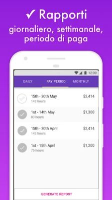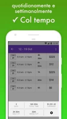Con Orario Lavoro, ogni ora lavorata si traduce in report chiari e azionabili. Genera dettagliati fogli presenze esportabili in formato Excel, perfetti per la busta paga o per creare fatture accurate, con la possibilità di personalizzare l'esportazione per specifici periodi o progetti. Monitora i tuoi guadagni in tempo reale, visualizzando stipendi per mese, settimana o periodi personalizzati, inclusa la gestione automatica degli straordinari giornalieri e settimanali. La tua tranquillità è priorità: tutti i dati sono salvati in modo sicuro sul cloud, assicurando che le tue informazioni siano sempre disponibili e protette, anche in caso di imprevisti con il tuo dispositivo. La sincronizzazione continua garantisce che il tuo timer non si fermi mai e che il tuo registro sia sempre aggiornato. Questa precisione e affidabilità è un segno distintivo di Time Squared co., il team dietro a questa potente soluzione.